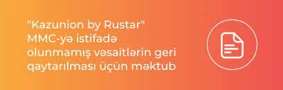 – Müqaviləni və digər sənədləri dogovor@kazunion.com ünvanına göndərin (QR-kodlu elektron sənədlərin (egov, elicense və s.) şəklini çəkməyə və ya skan etməyə ehtiyac yoxdur!)